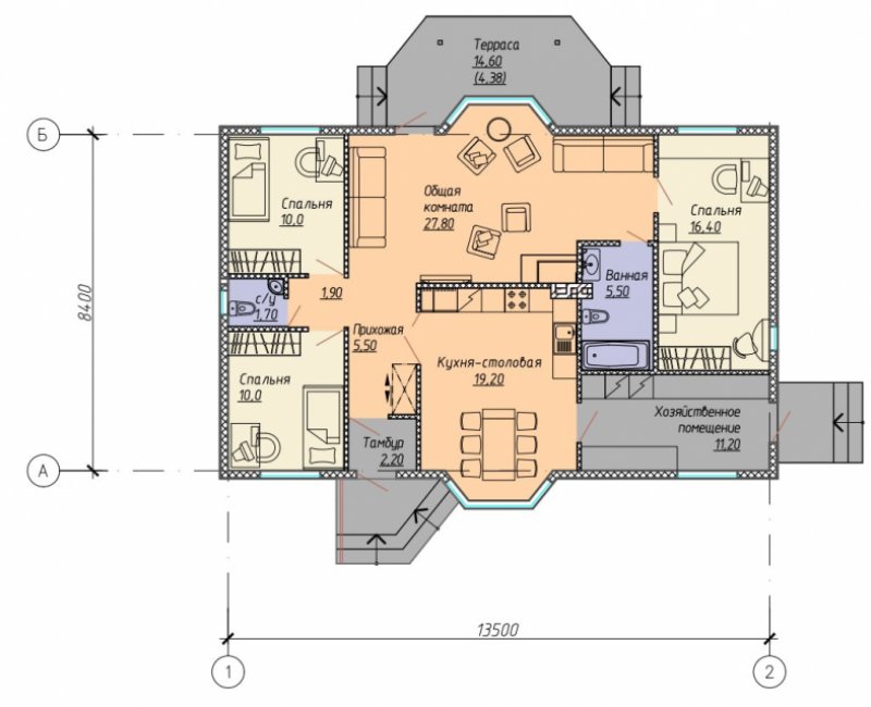Общая площадь дома – 136 м2Стоимость базового комплекта – 120 000 рублей