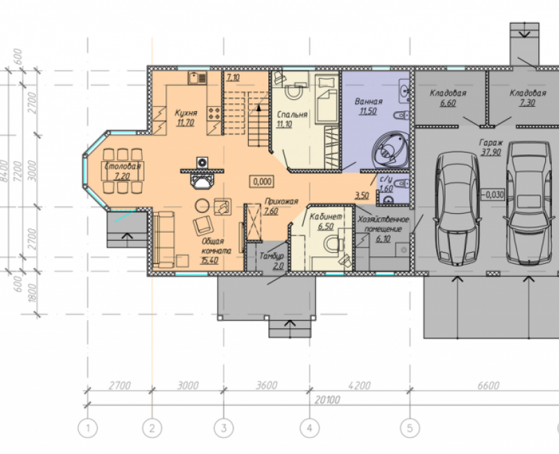Площадь дома - 246 м2, в том числе гараж – 55,5 м2Стоимость базового комплекта – 215 000 рублей