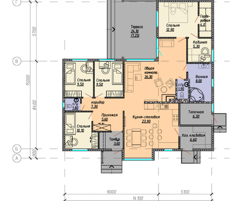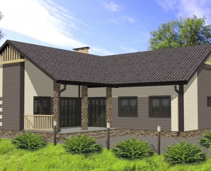 Большой одноэтажный каркасный дом для семьи из 3-4 человек. Классический дизайн подойдет как для молодых людей, так и для старшего поколения. Теплый, уютный, компактный, с открытой террасой. Возможно проживание как временное, так и постоянное.